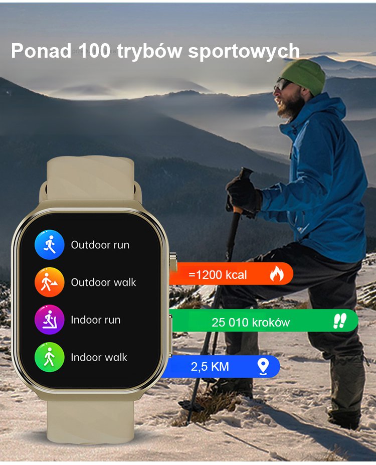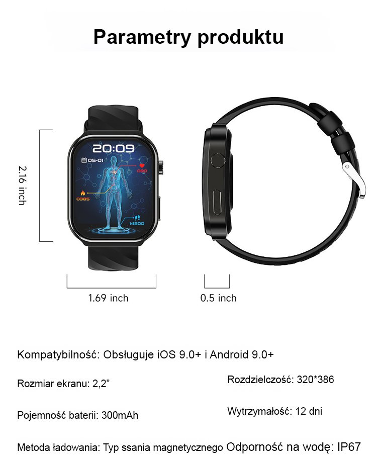 【Nieinwazyjny pomiar poziomu glukozy we krwi】Inteligentny zegarek monitorujący ciśnienie krwi, pozio